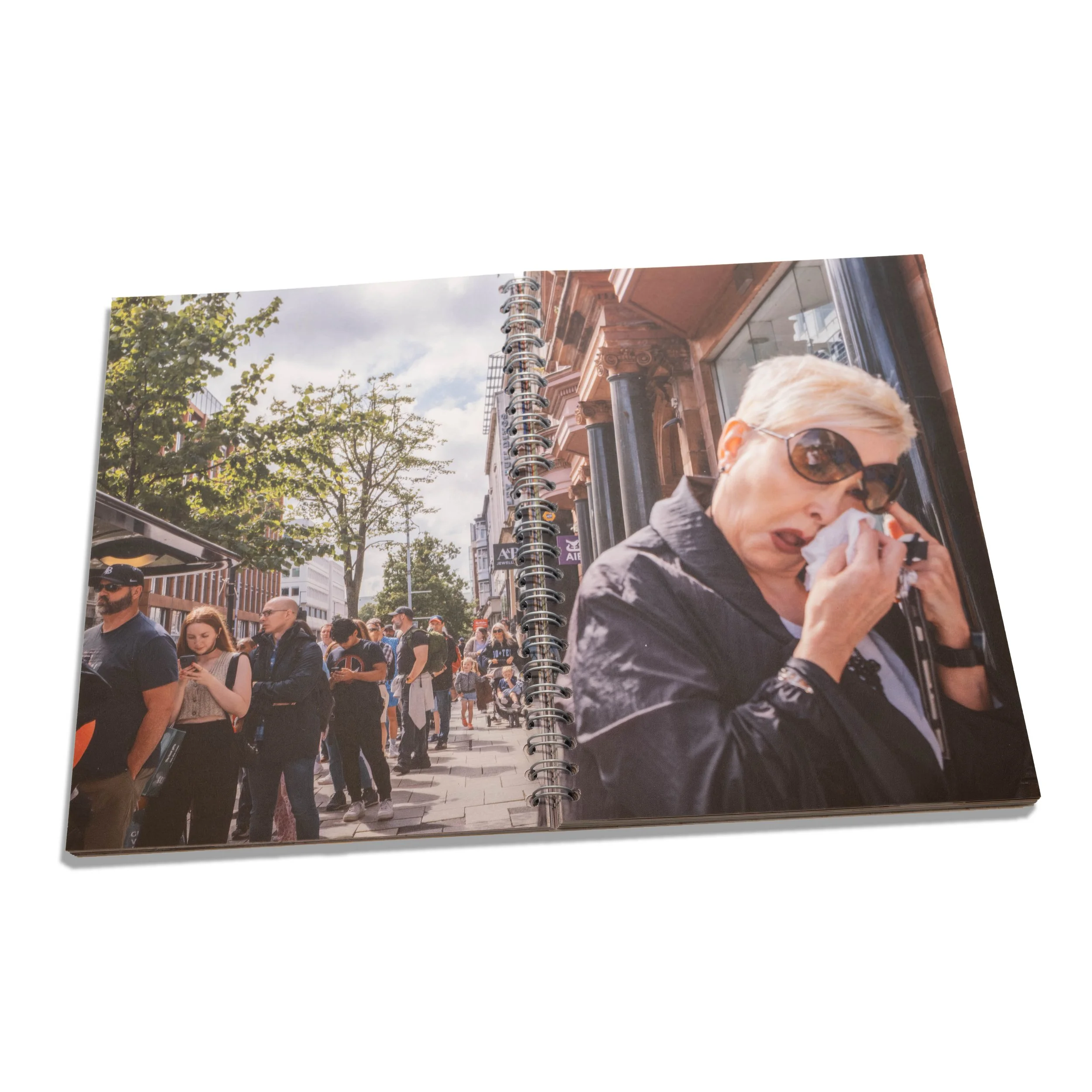 Up The Lagan in a Bubble is a self-published photobook by Belfast based photographer Daniel Graham, whose long-standing obsession with the city’s streets has driven the creation of this body of work. For years, Graham has wandered through Belfast with his camera, searching for those fleeting moments of humour, humanity and strangeness that unfold in the ordinary rhythm of daily life. His photographic story distils the energy of the city, its wit, its tensions, its resilience and the quiet poetry that often goes unnoticed.